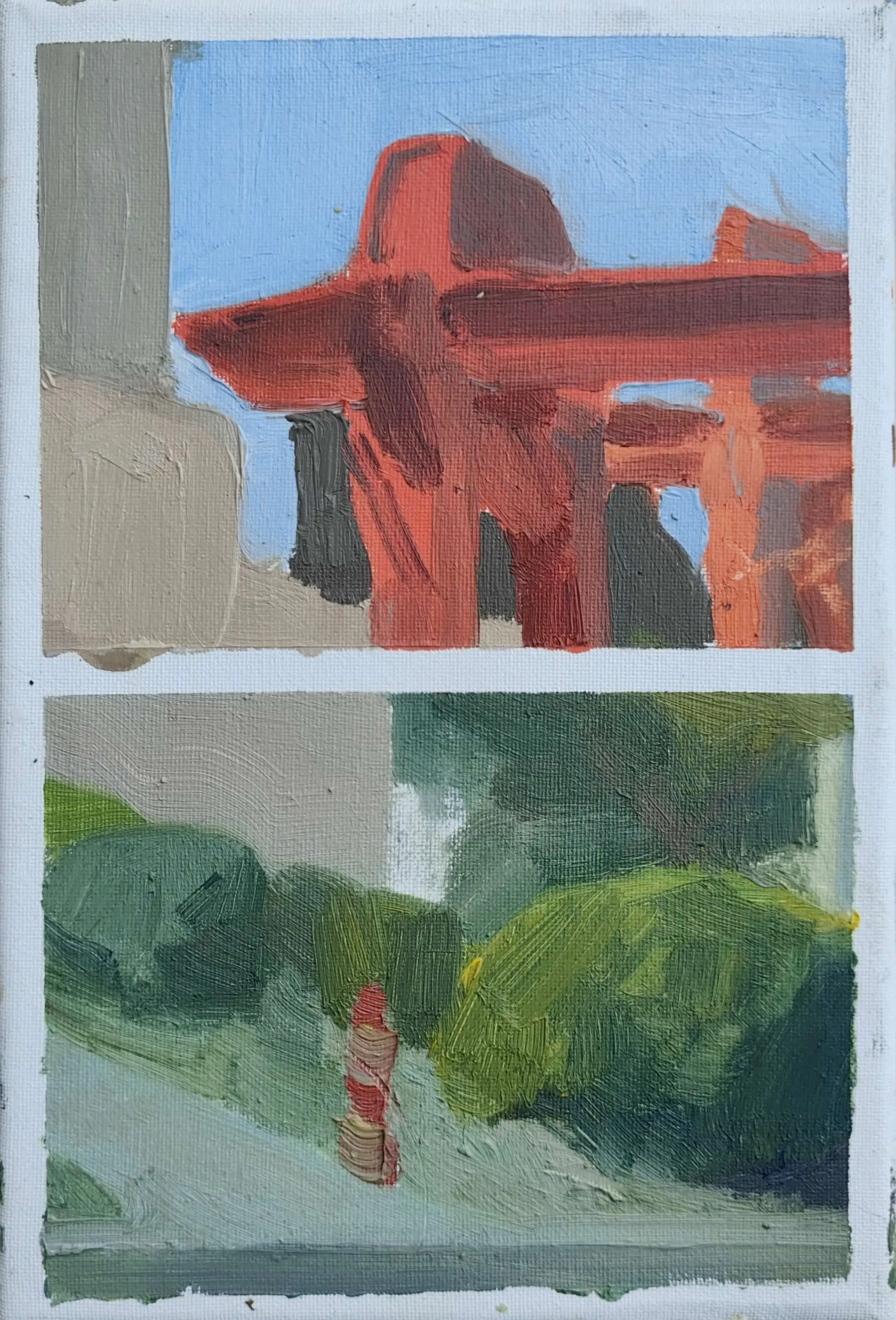 随着尺幅的增大,单纯的平涂不足以撑起整个画面,需要画出同一个颜色在空间上的变化,具体的做法是:拉大尺度,看前后的微差。